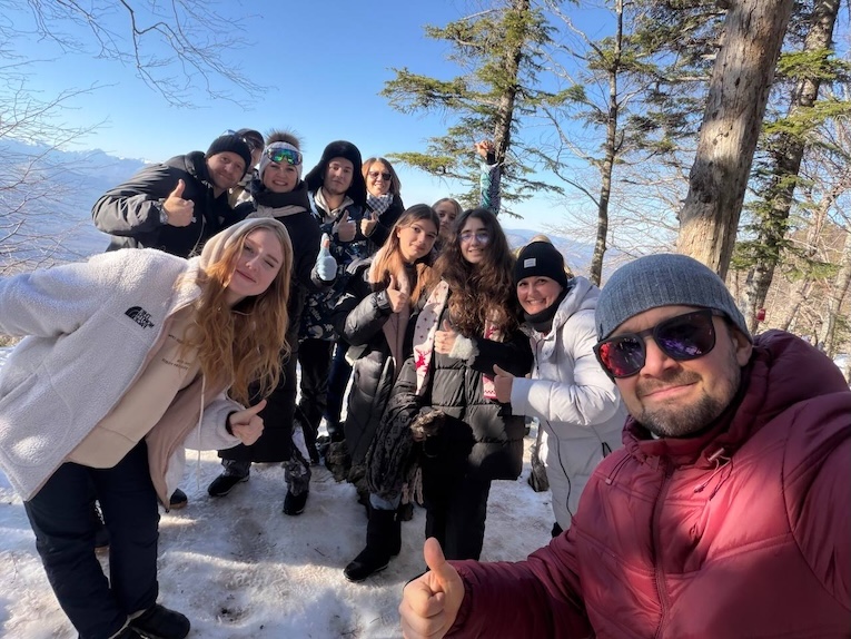В первый день посетили Гуамское ущелье, где вначале погуляли по лесу, наслаждаясь красотой Божьего творения. А после совершили экскурсию на прогулочном поезде к каскадам горной реки, водопадам и горным обрывам. За несколько дней до поездки Адыгею накрыл снежный циклон, и высота снежного покрова достигала 85 см. Большинство дорог было перекрыто. Но несмотря на это, и благодаря молитвам, Господь послал ясную погоду и основные дороги были расчищены. Ничто не мешало любоваться величественной красотой Адыгейских гор.