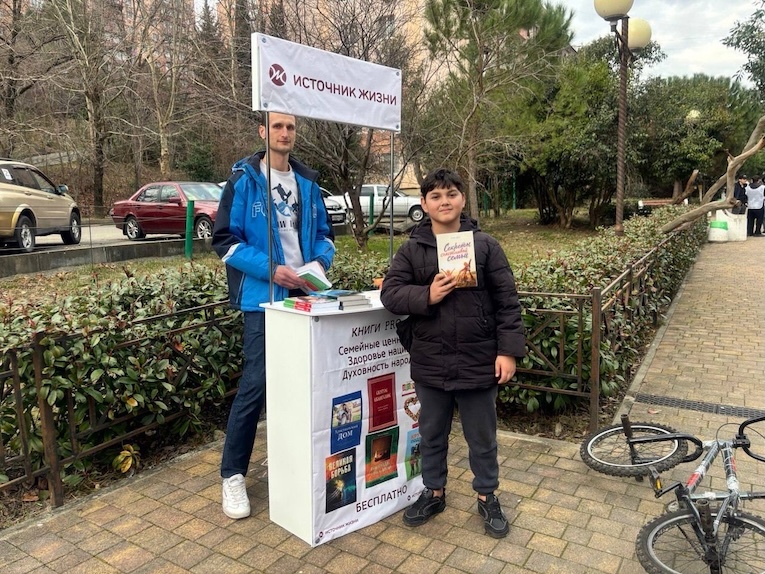 В субботу 7 февраля волонтёры из общины «Древо Жизни» в пгт. Сириус совместно с волонтерами издательства «Источник жизни» вышли на улицу с литературным столом. Без громких лозунгов, без сцены, без микрофонов. Просто — с книгами и надеждой!
